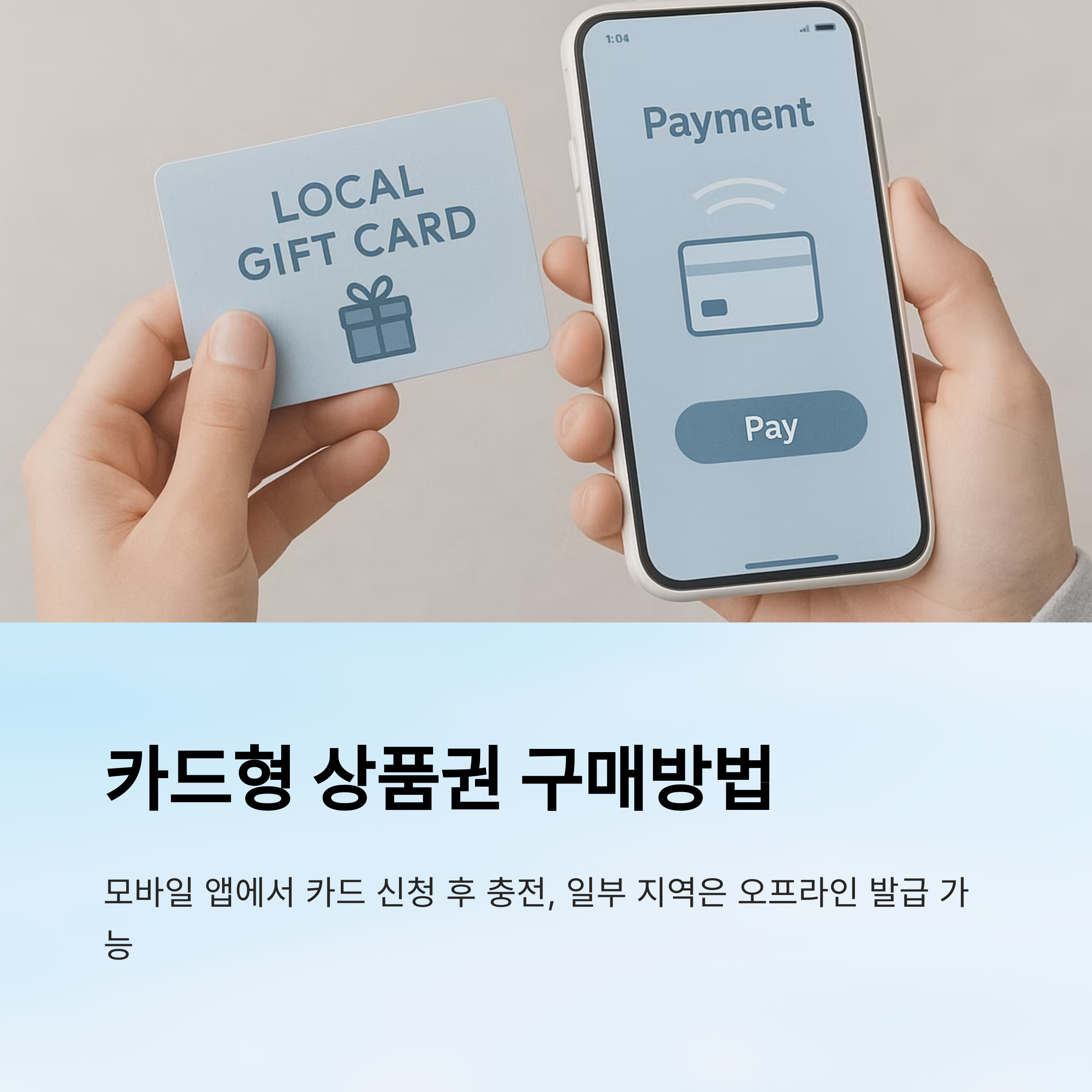 카드형 지역사랑상품권은 모바일 앱에서 카드를 신청한 후 충전하는 방식입니다.
