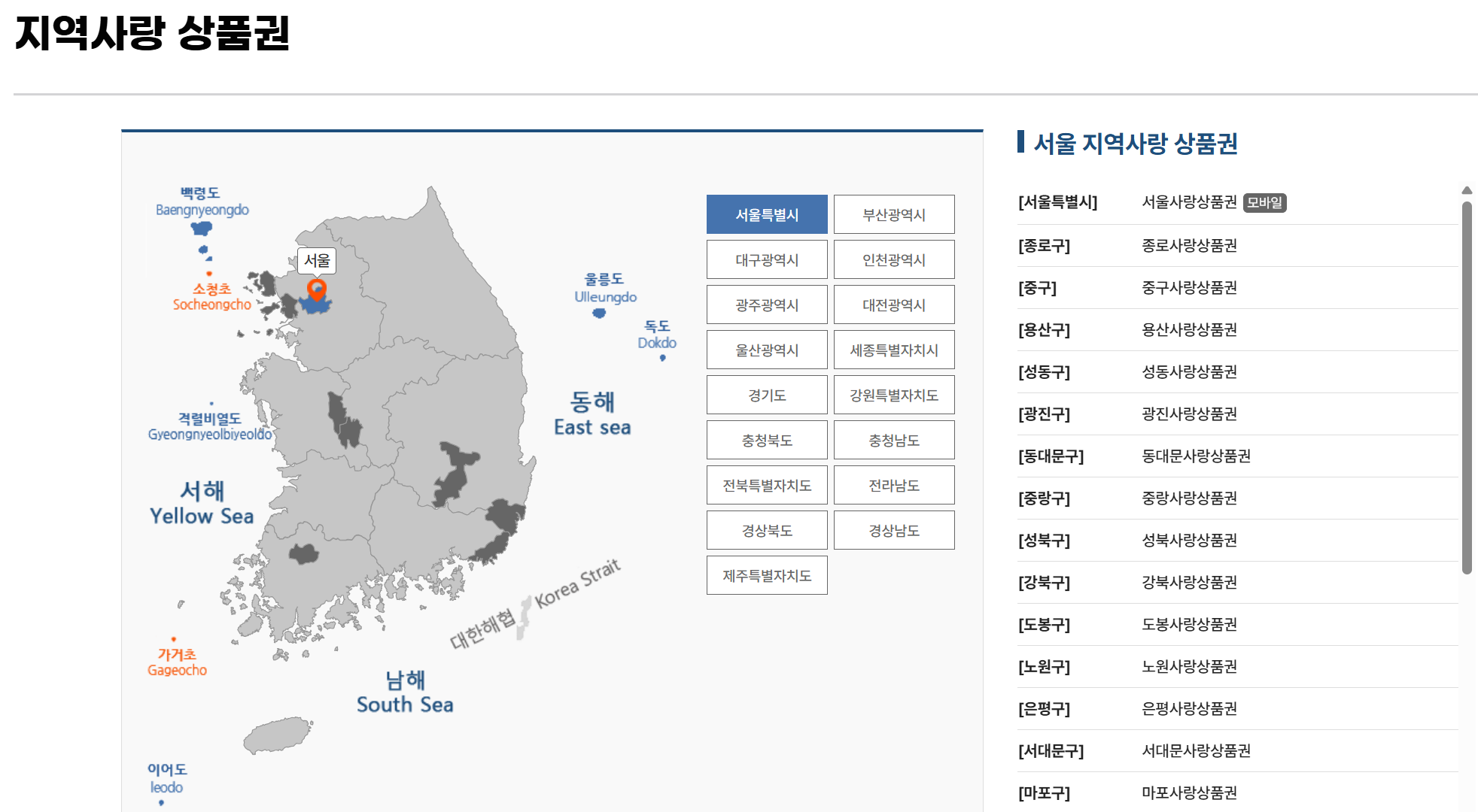 지역사랑상품권은 지자체 내 등록된 가맹점에서만 사용할 수 있습니다.