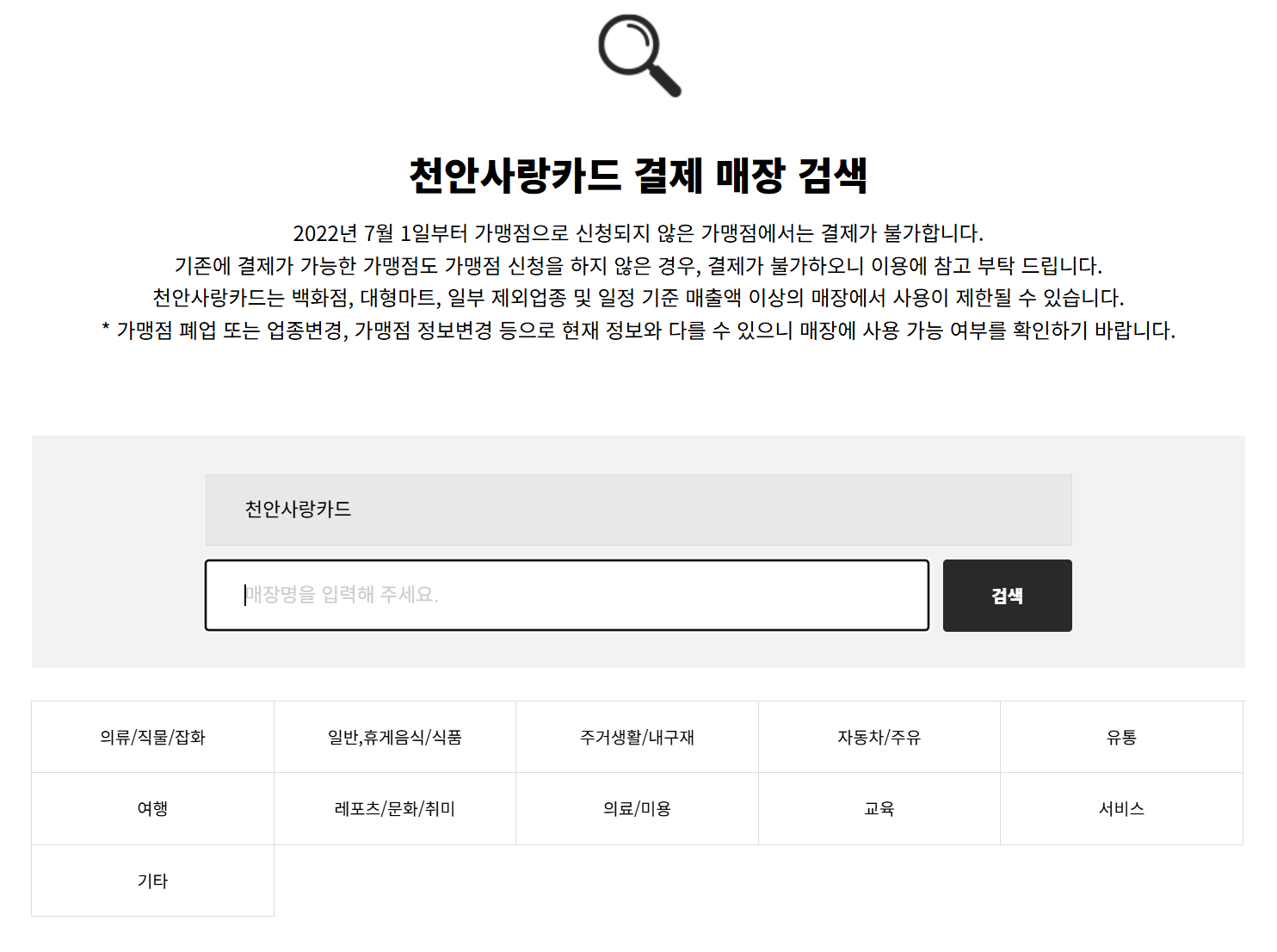 (예 : 천안시 지역사랑 상품권 홈페이지에서 가맹점 찾기 가능)