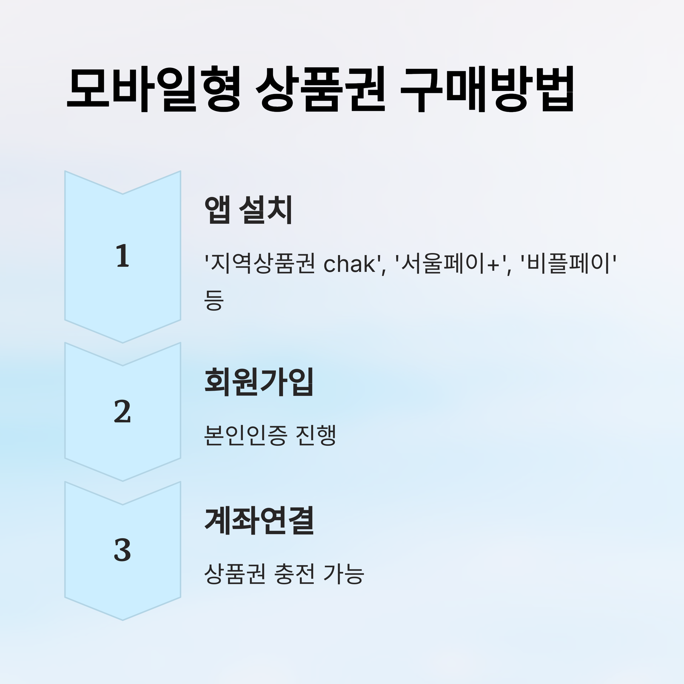 모바일형은 '지역상품권 chak', '서울페이+', '비플페이' 등의 앱을 설치하여 구매할 수 있습니다.