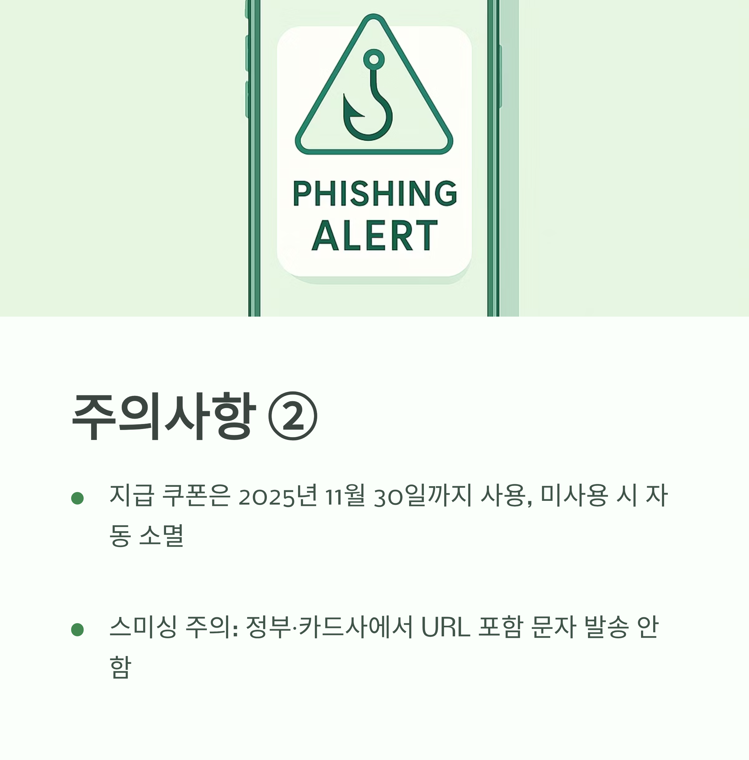 - 스미싱 주의: 정부·카드사에서 URL 포함 문자 발송 안함