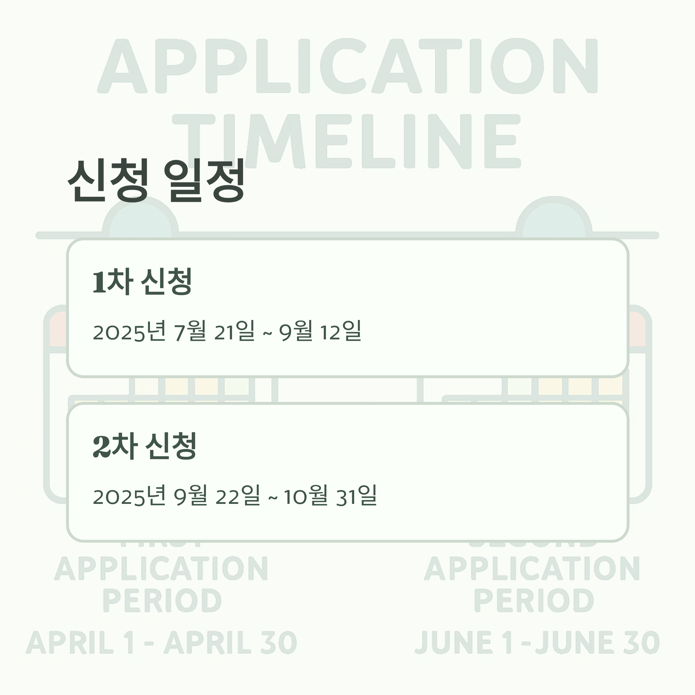 - 1차 신청 기간: 2025년 7월 21일(월) ~ 9월 12일(금)