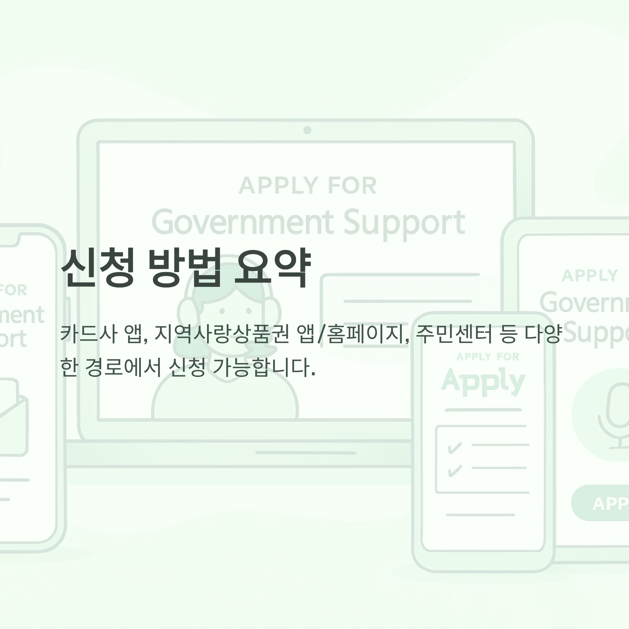A. 카드사 앱, 지역사랑상품권 앱/홈페이지, 주민센터 등 다양한 경로에서 신청할 수 있습니다.