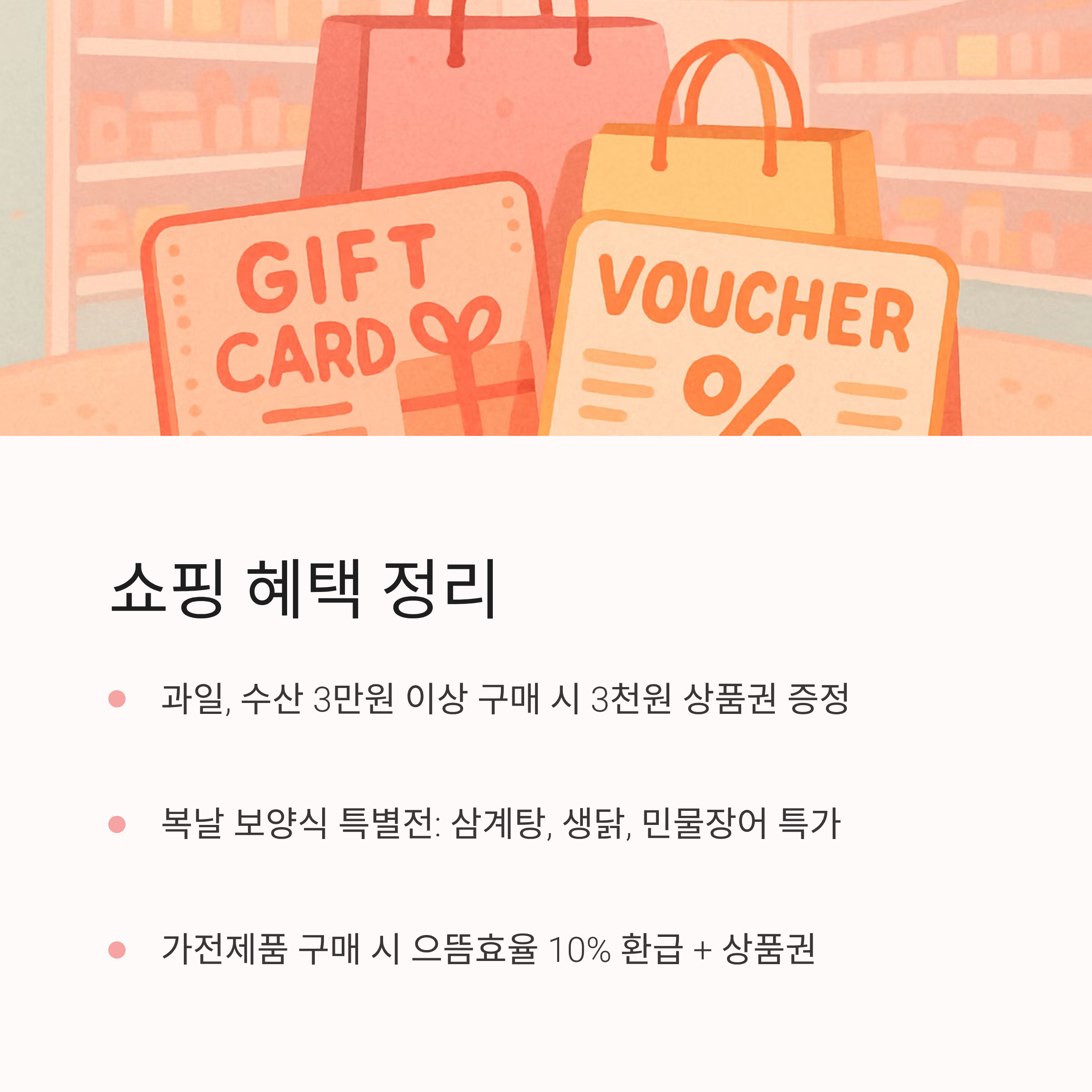 - 3만 원 이상 구매 조합 맞추기: 상품권 증정 조건을 전략적으로 활용
