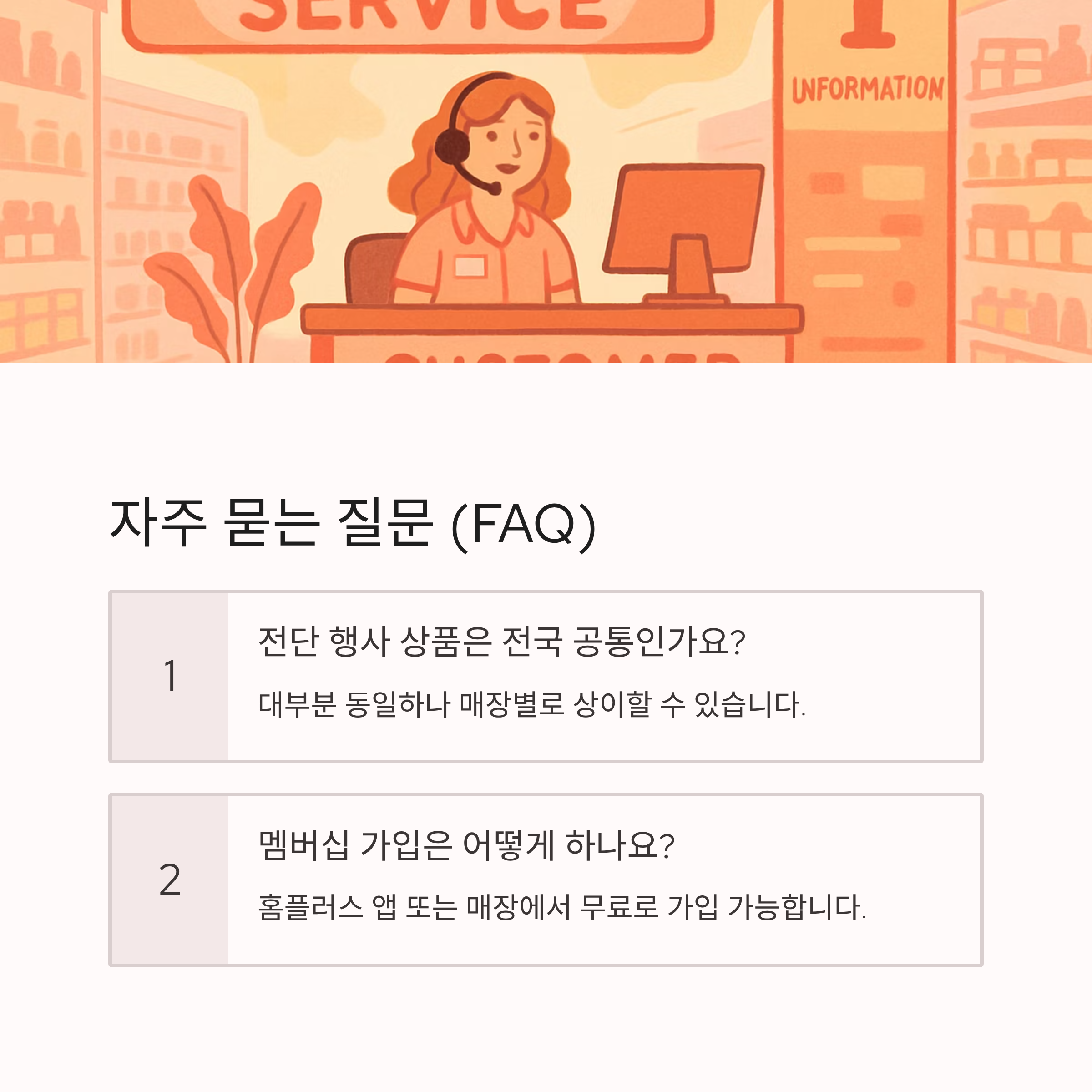 A2. 홈플러스 앱 또는 매장에서 무료로 가입 가능하며, 즉시 할인 혜택이 적용됩니다.