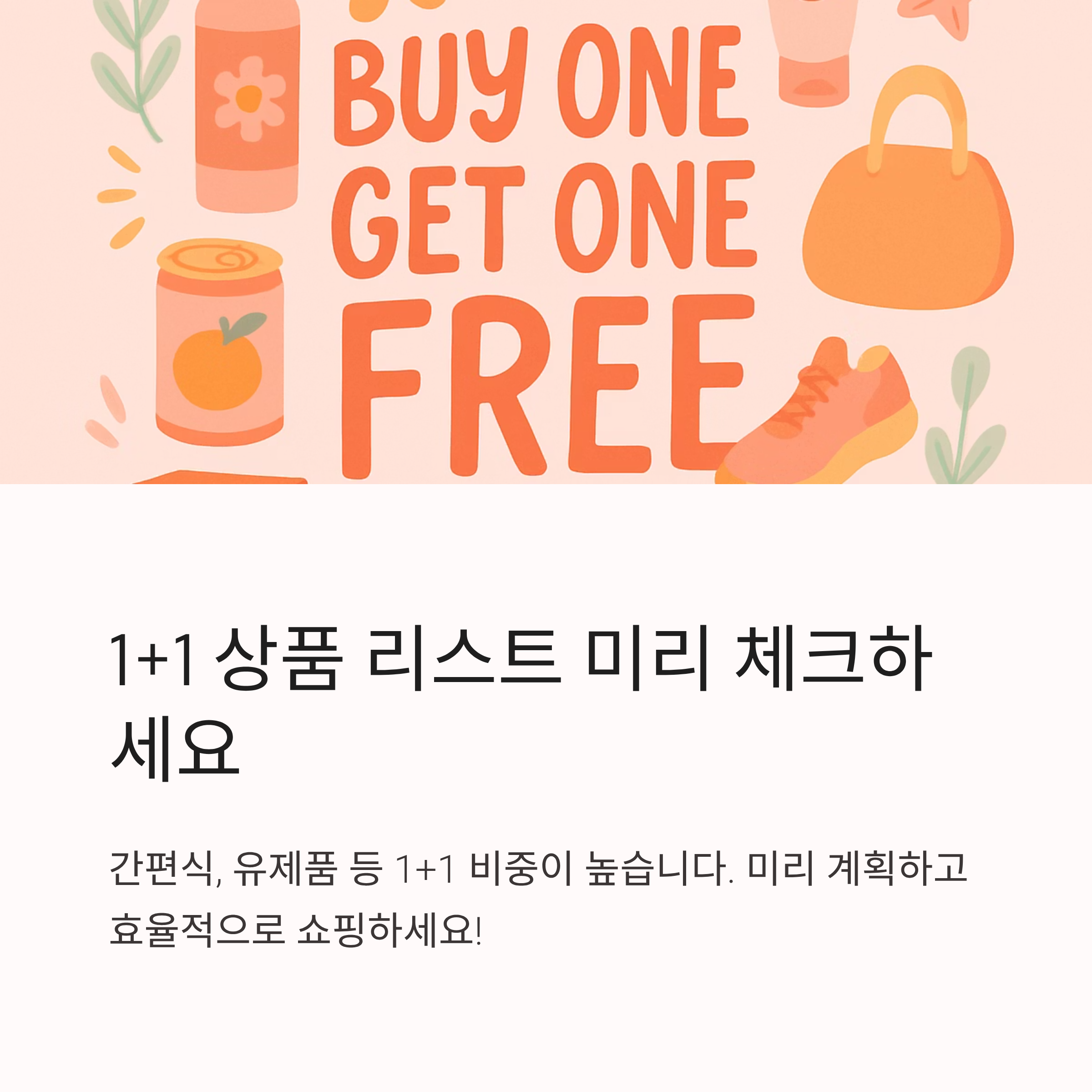 - 1+1 상품 리스트 미리 체크: 간편식, 유제품 등 1+1 비중 높음