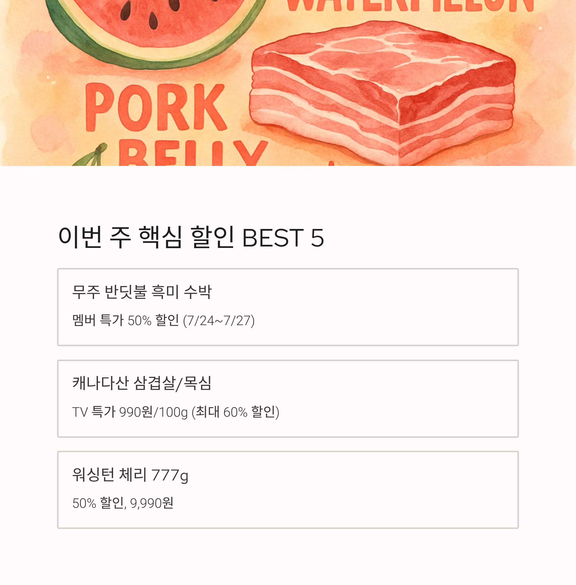 - 무주 반딧불 흑미 수박 (대/특): 멤버 특가 50% 할인 (7/24~7/27)