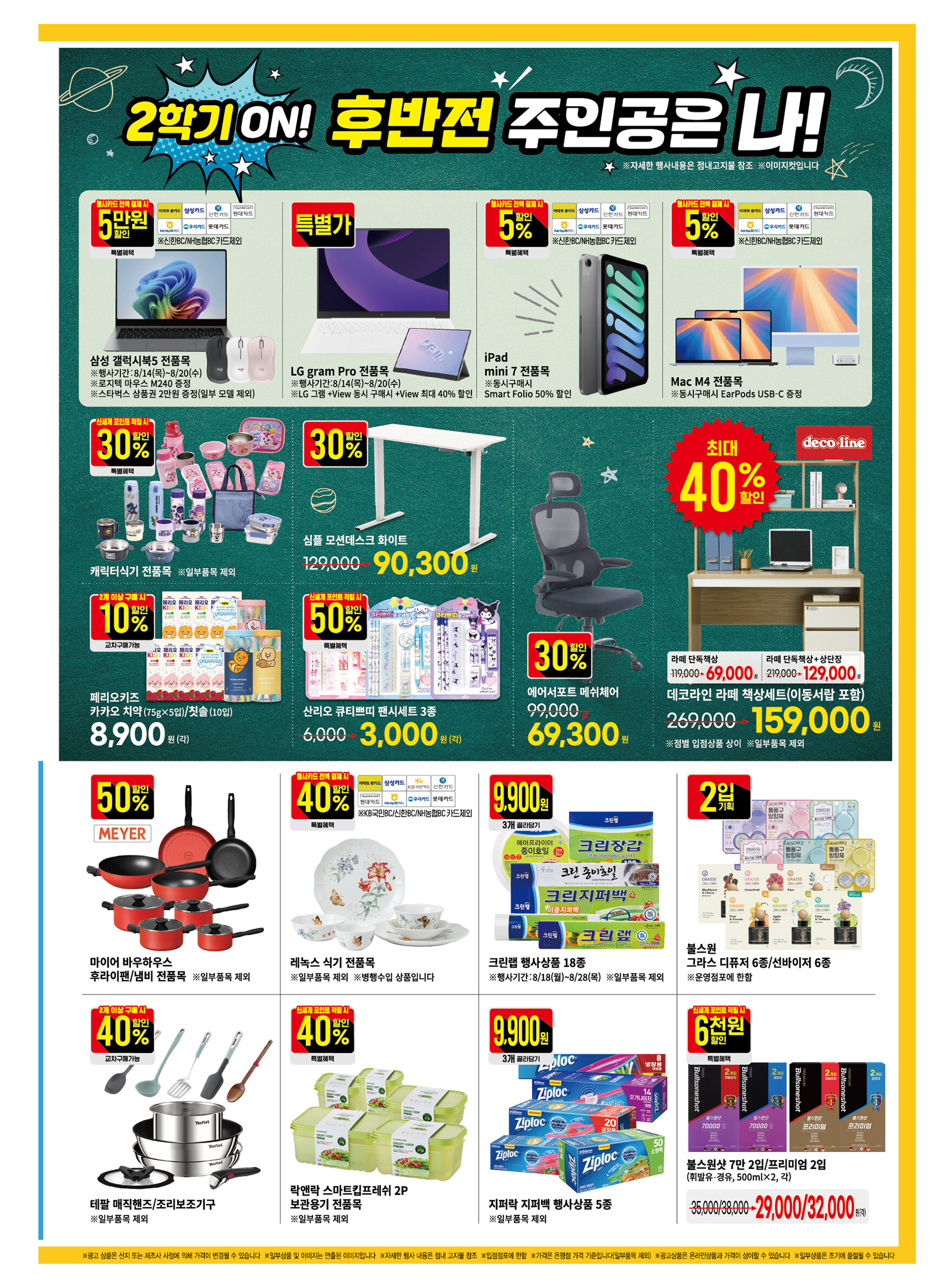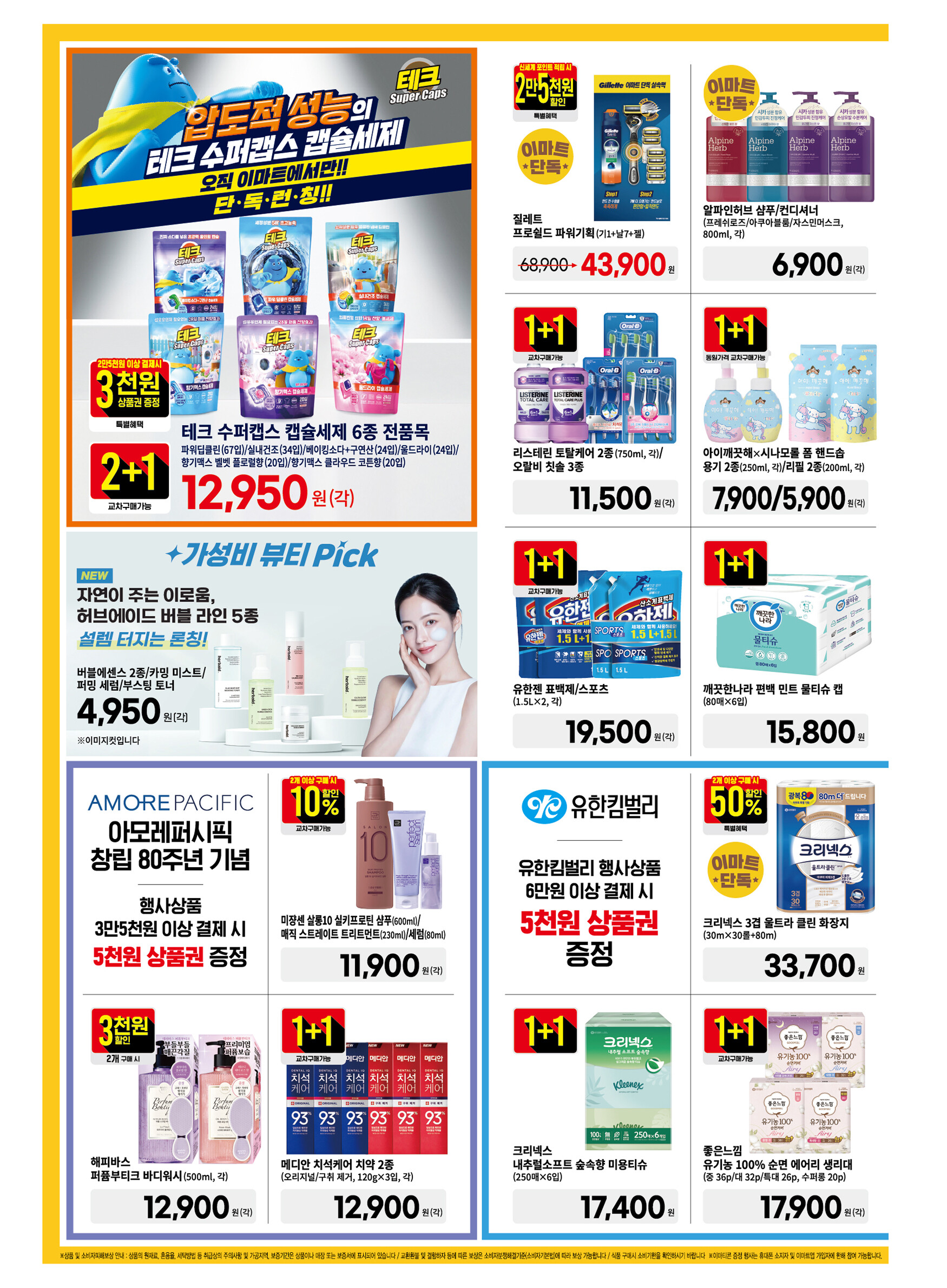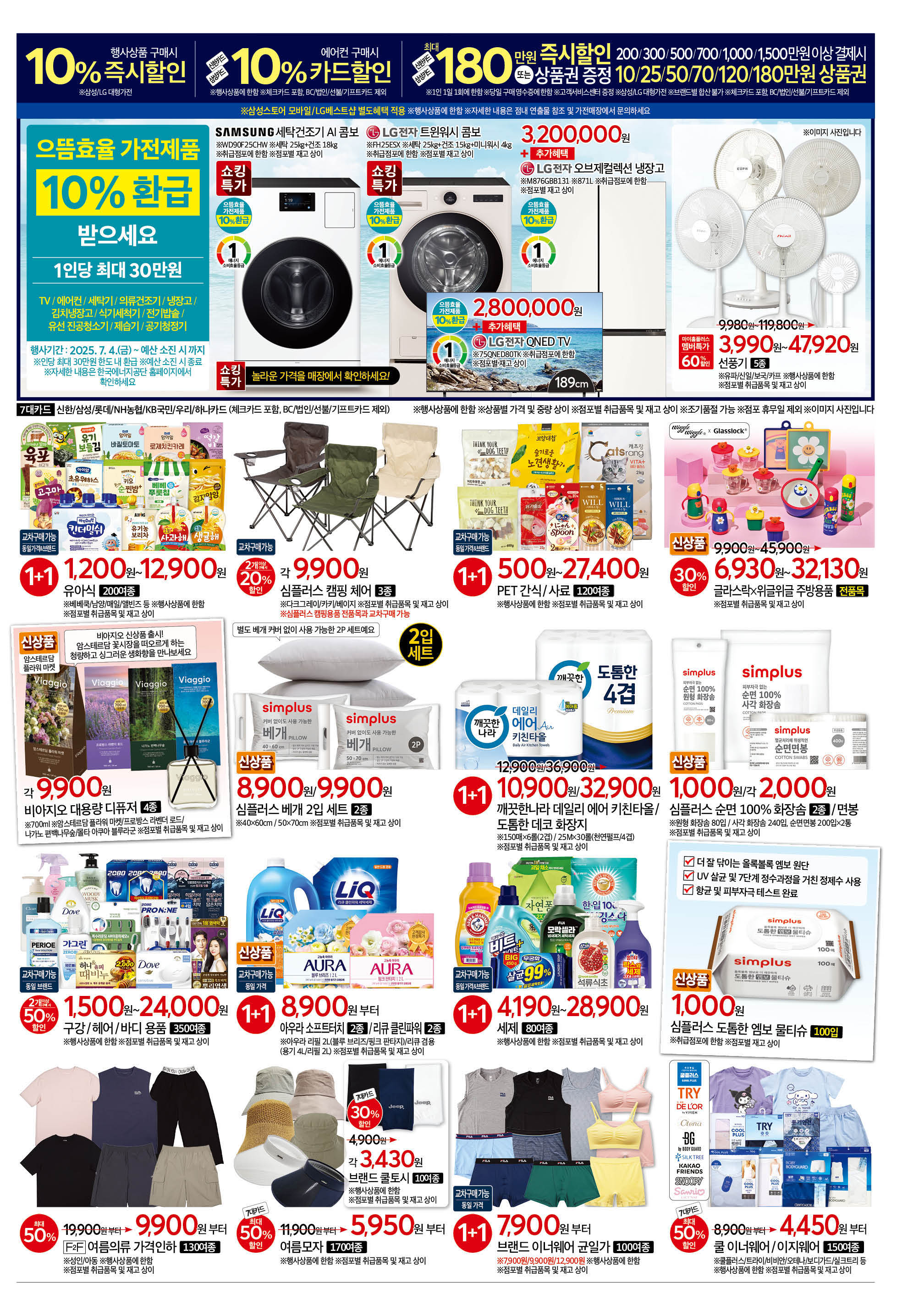 | 생활용품 | 3M, 유아용품, 해피콜 등 | 생활·주방 50% 할인 |