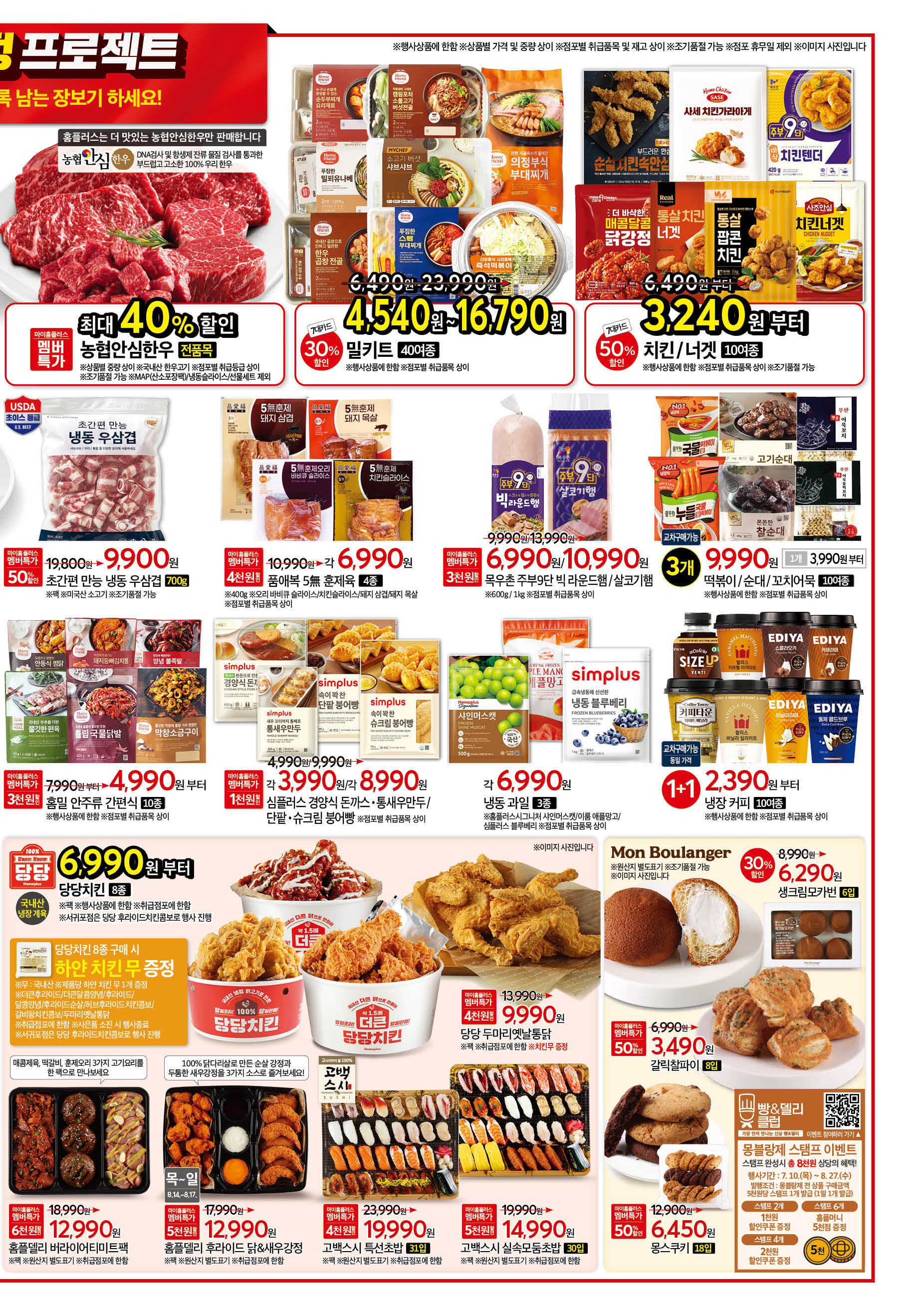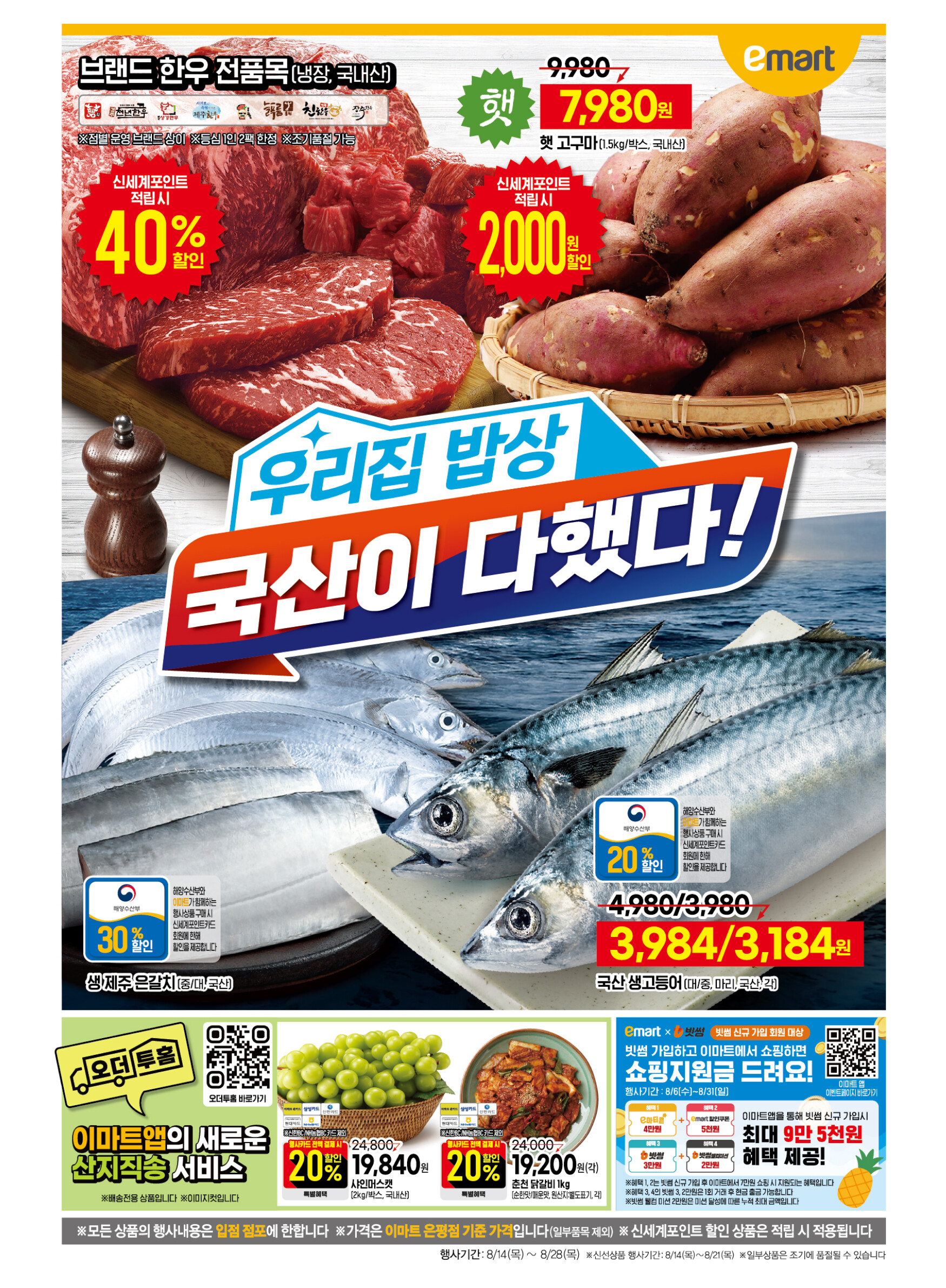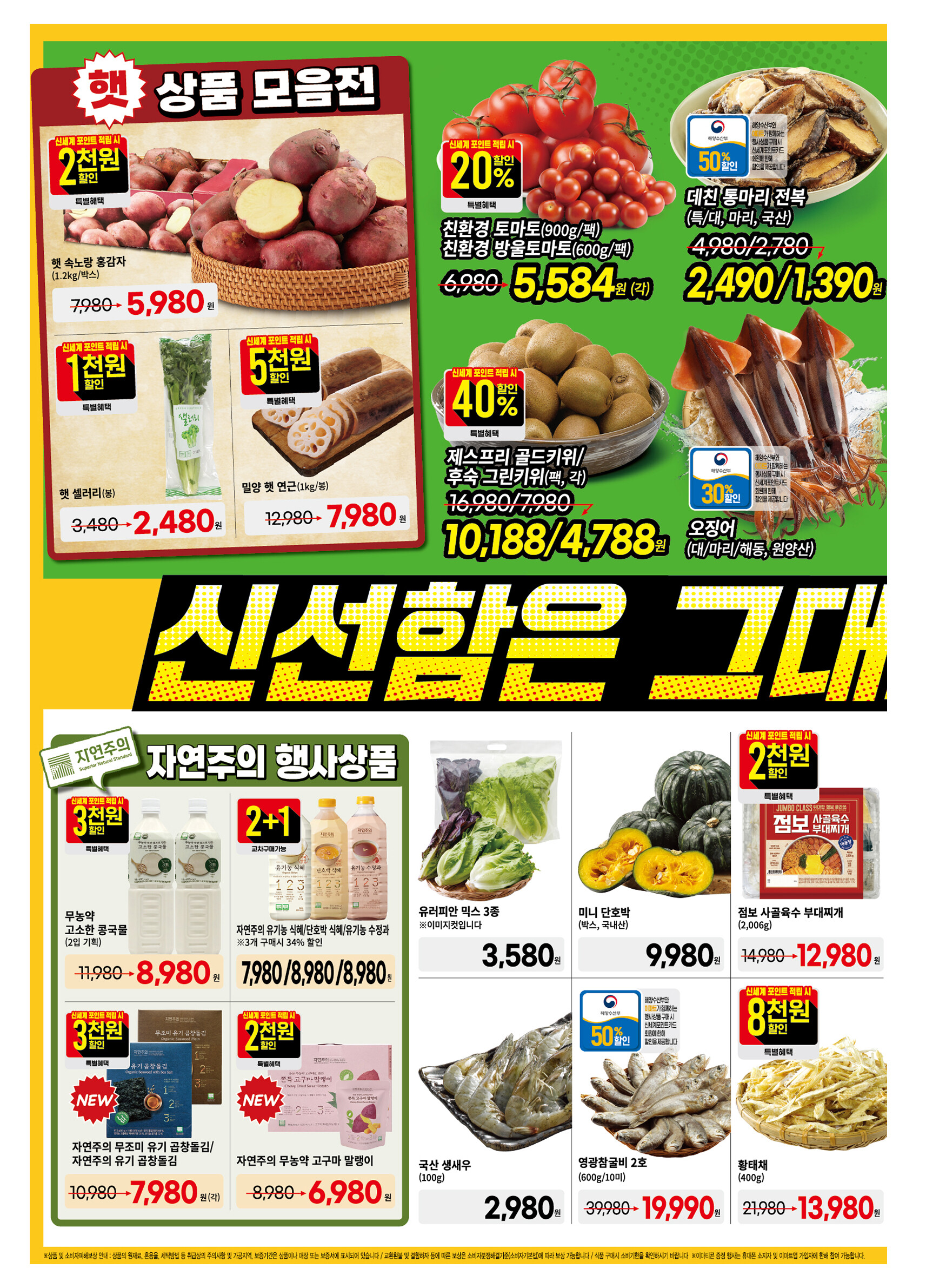 | 수산물 | 오징어 50% 할인 | 바다장어·전복 50% 할인 |