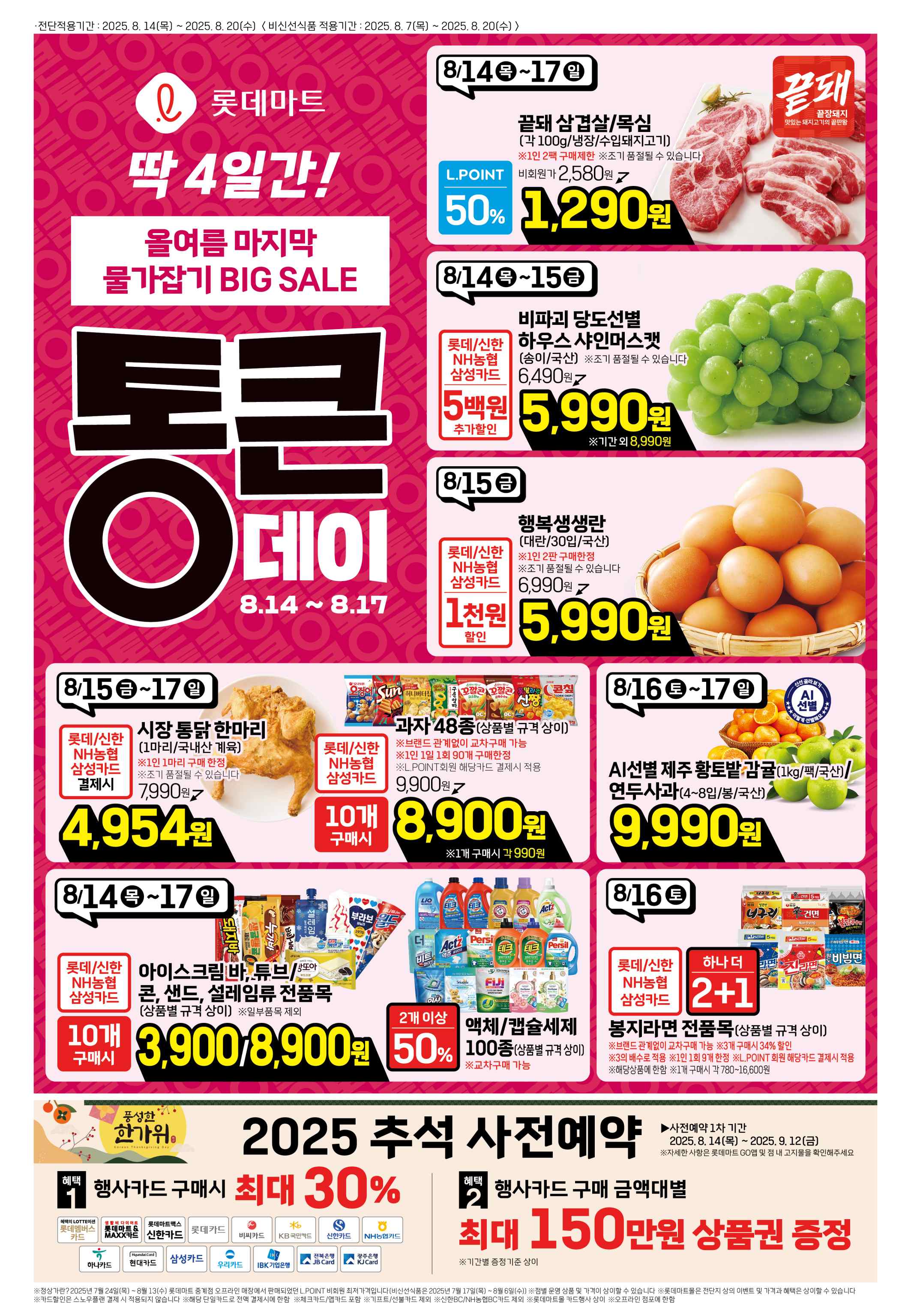 롯데마트에서 8월 14일부터 17일까지 대규모 롯데마트 전단행사가 진행됩니다.