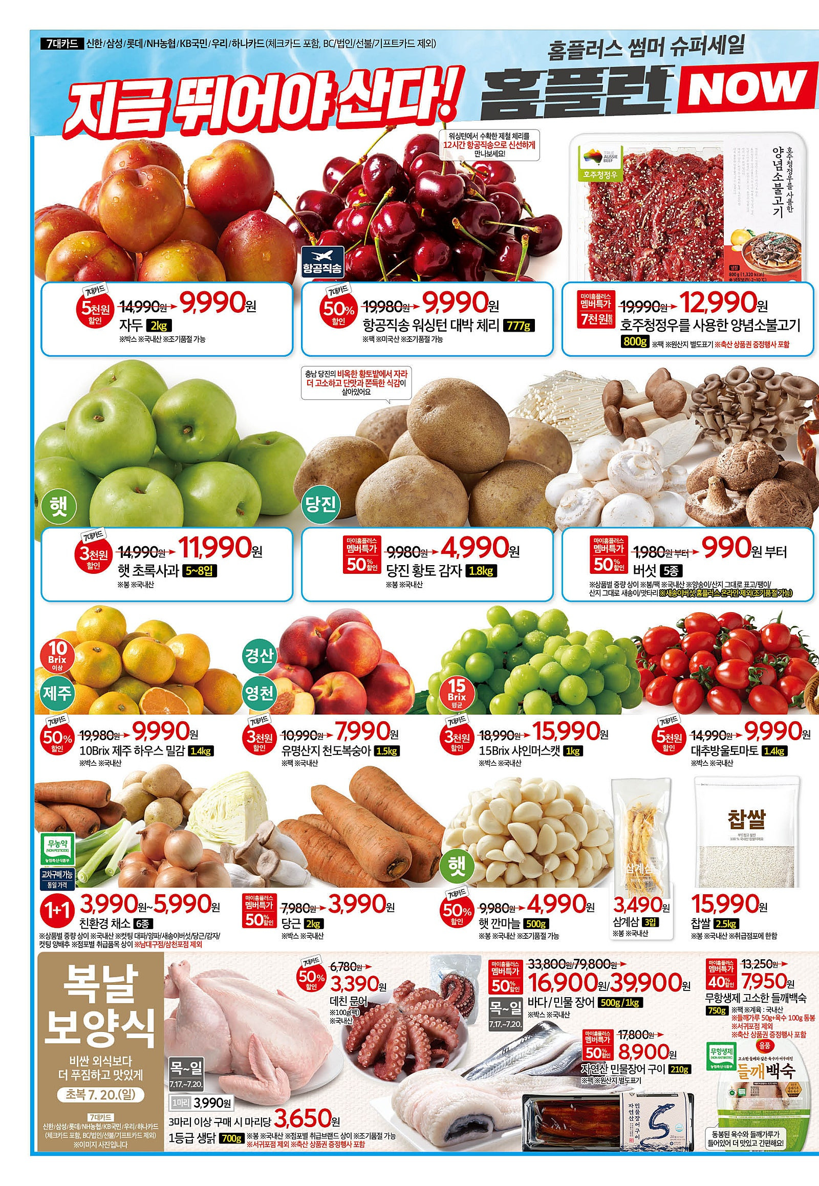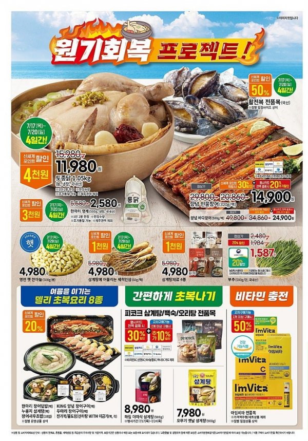 | 추천 고객 | 식자재 전반 세일을 노리는 주부, 대가족 | 삼계탕, 닭, 장어 등 복날 음식 준비 고객 |