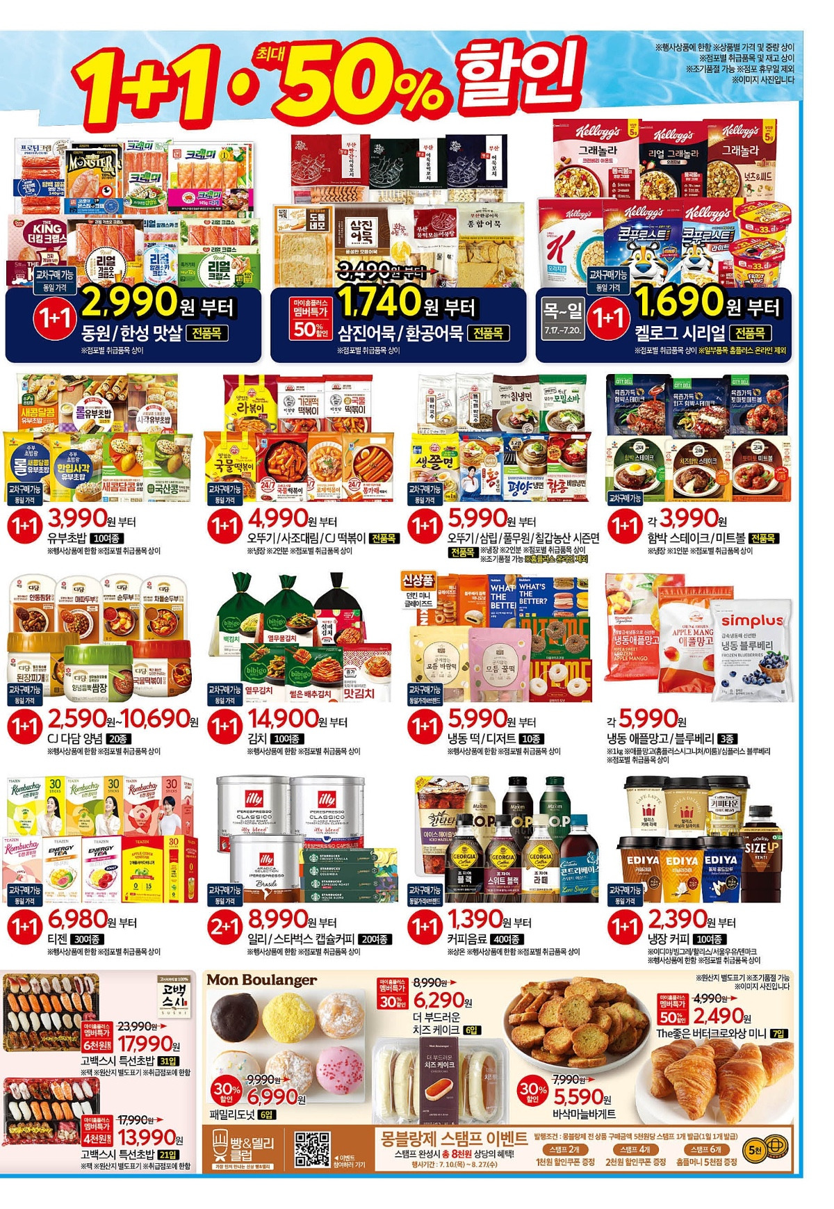 - 냉동식품/유제품/커피 1+1 및 추가 할인