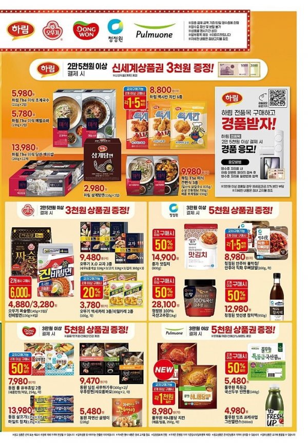 - 홈플러스: 6만 원 이상 구매 시 5천 원 상품권 (멤버십 전용)