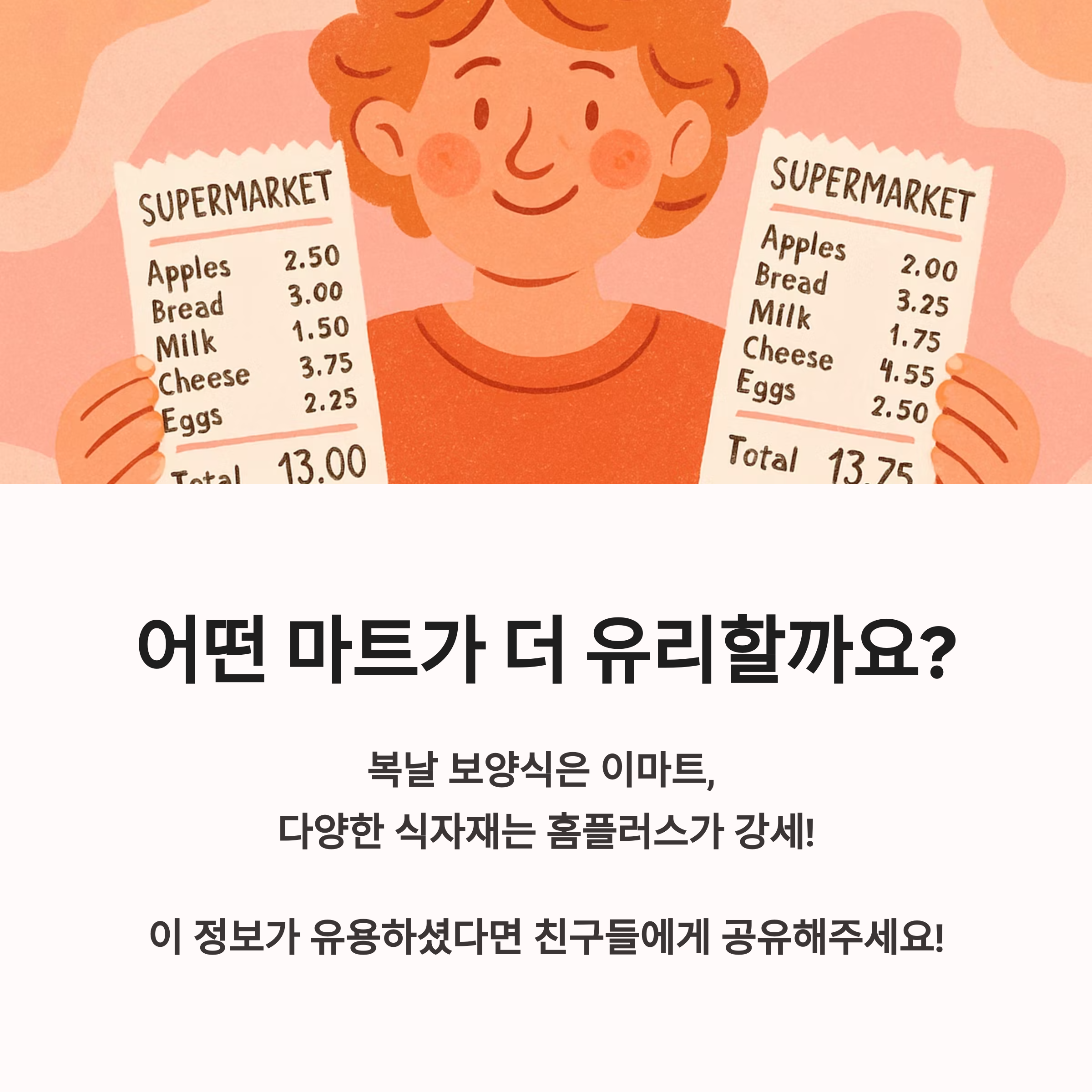 두 마트의 핵심 할인 품목과 혜택을 한눈에 비교 정리해드립니다.