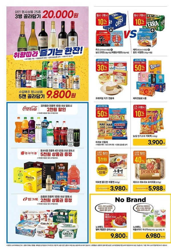 - 와인 3병 2만 원 / 수입맥주 5캔 9,800원